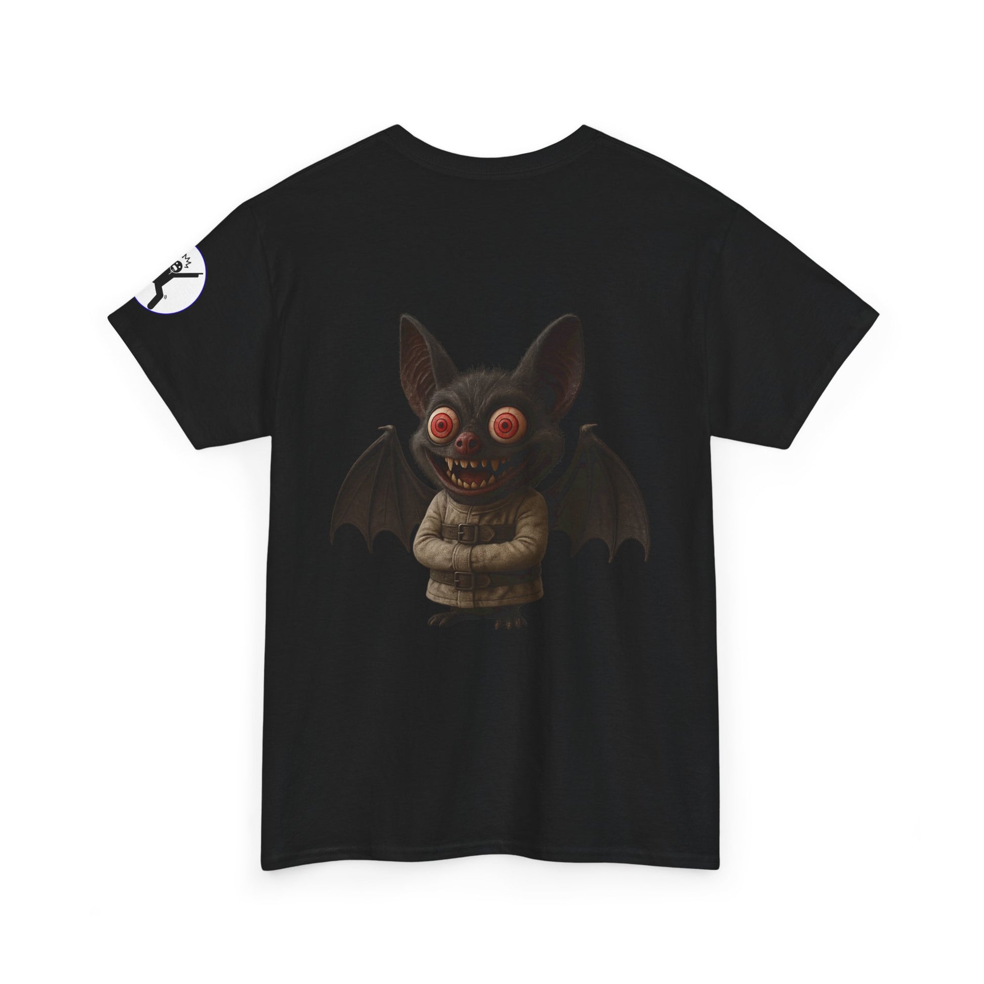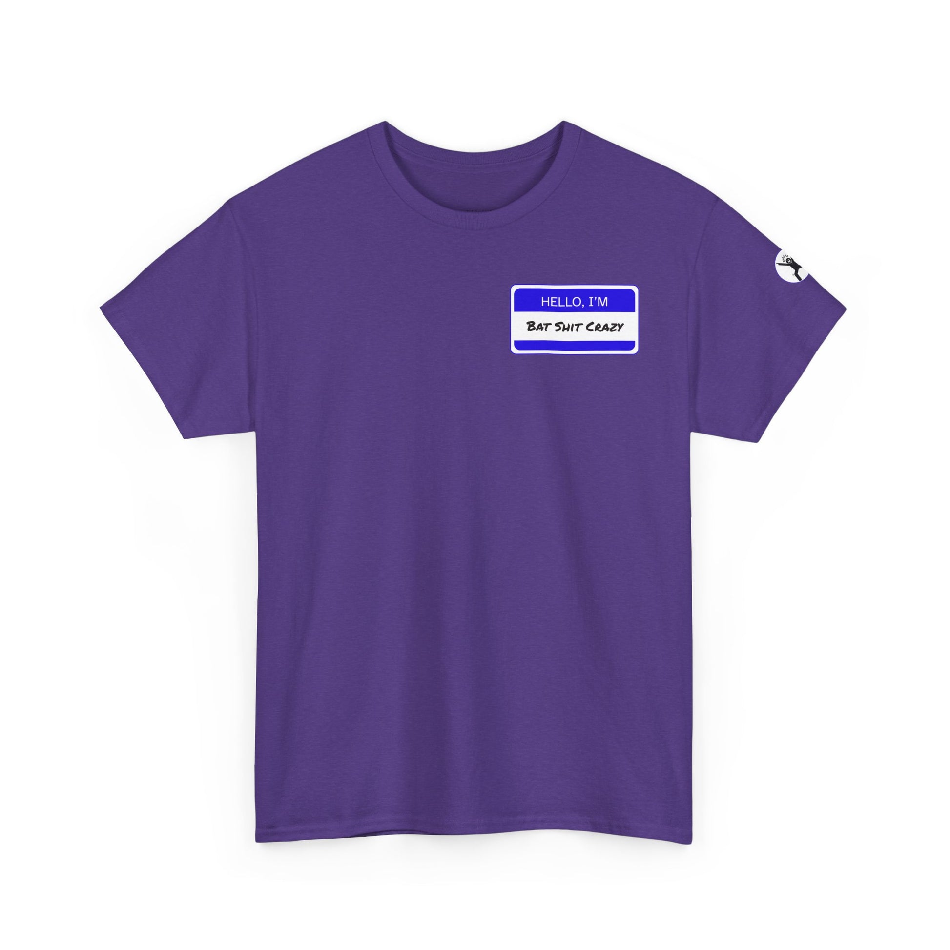 This tee features a mock name tag on the front (“Hello, I’m Bat Shit Crazy”) and our exclusive deranged bat art on the back, complete with spiraling eyes and a straitjacket. Bonus: the left sleeve sports a drooling stick figure to warn the world that you're just a little unhinged—and proud of it.