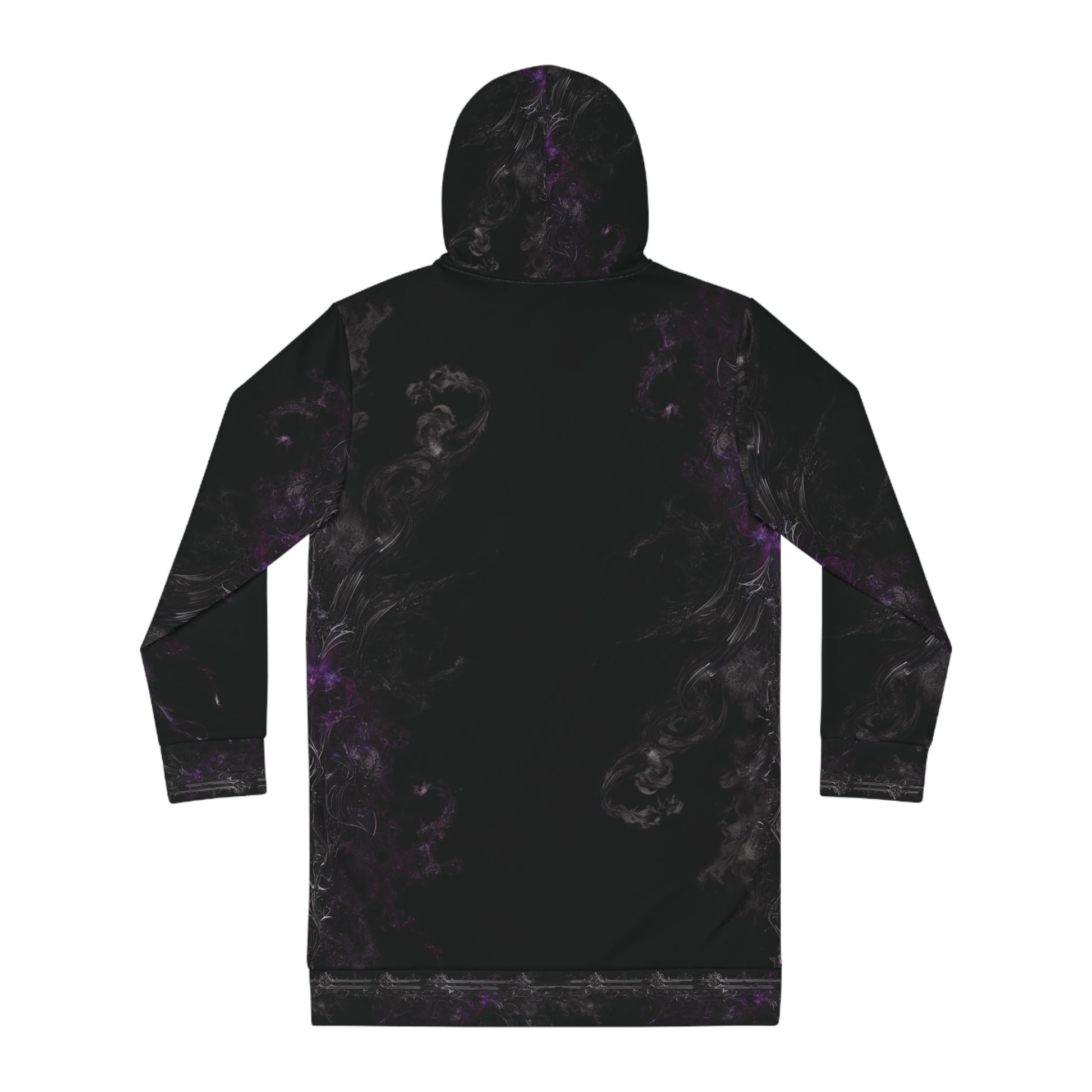 Introducing our stunning Hoodie Dress, perfect for those who embrace a unique style. This versatile piece combines comfort with a bold, eye-catching design. The vibrant all-over print showcases a mesmerizing blend of dark hues, enriched with intricate details—ideal for making a statement at any casual outing or cozy night in. The adjustable hood adds a layer of warmth, making it suitable for chilly evenings out or lounging around at home. This hoodie dress is perfect for fashion-forward women looking to add flair to their wardrobe. It’s a great gift for birthdays, casual gatherings, or just to show someone you care, especially during the cooler months when comfort meets style.